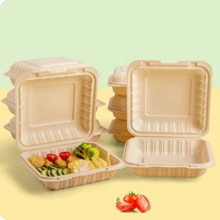 Bagasse Clamshell Takeaway Container Box - 7" x 5"